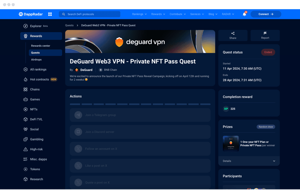 Organizing raffles/drops of our plans for the audience of partner projects. We've already launched drops for DappRadar, Jumper and Nomis users, which increased key metrics through additional VPN rewards for completing certain actions